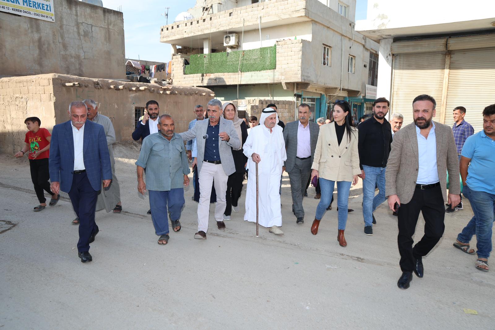 Mahalle Muhtarı Şeyhmus Yıldırım ve mahalle sakinleriyle bir araya gelen heyet, bölgedeki mevcut durum, ihtiyaçlar ve vatandaş talepleri hakkında bilgi aldı.