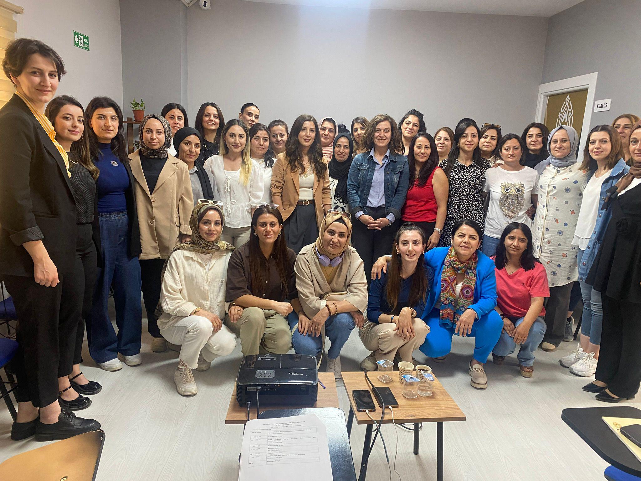 Mardin, Şırnak ve Şanlıurfa’dan gelen ilçe belediyelerinde görevli Kadın Politikaları Müdürlüklerinden 38 kadın personelin katılımıyla gerçekleşen dört günlük eğitim programı, kadın odaklı yerel yönetim anlayışının güçlendirilmesini hedefledi.